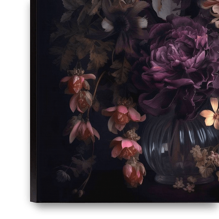 Bestelle dieses Blumen-Wandbild Dark Harmony | Blumenstrauß von Flora Exlusive als Reproduktion auf Leinwand, Alu-Dibond, als Poster, Fototapete oder Acrylglasbild.