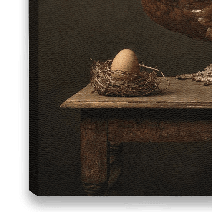 Bestelle dieses Stilleben Das Huhn und das Ei von Carolien van Schie als Reproduktion auf Leinwand, Alu-Dibond, als Poster, Fototapete oder Acrylglasbild.