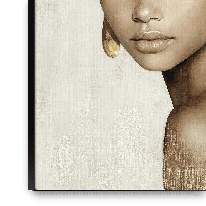 Das Mädchen mit den goldenen Ohrringen, mit einer Anspielung auf das Werk von Johannes Vermeer "Das Mädchen mit der Perle". In sanften Farbtönen ist dies ein besonderer Blickfang für Ihr Interieur.