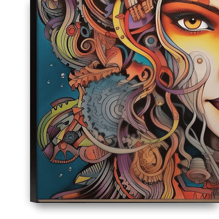 Ihre gewählte Kunst auf Leinwand, gespannt in einem Aluminiumrahmen. Schnell und einfach austauschbar für eine frische Ausstrahlung und ganz nach Ihren Wünschen.