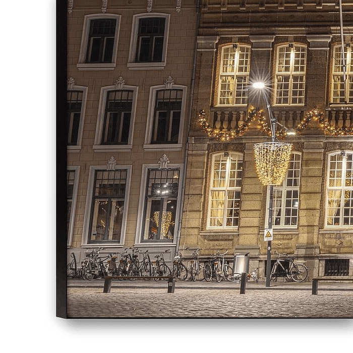 Dieses schöne Foto zeigt das historische Rathaus von Roermond auf dem Marktplatz, wunderschön beleuchtet gegen den dunklen Abendhimmel. Die festliche Dekoration und die warme Weihnachtsbeleuchtung bringen die reiche Architektur dieses ikonischen Gebäudes zur Geltung. Mit seinem beeindruckenden Uhrenturm und der symmetrischen Fassade strahlt das Rathaus Erhabenheit und Charme aus. Das Foto eignet sich hervorragend zur Dekoration oder zur Werbung für Roermond als historische und stimmungsvolle Stadt.