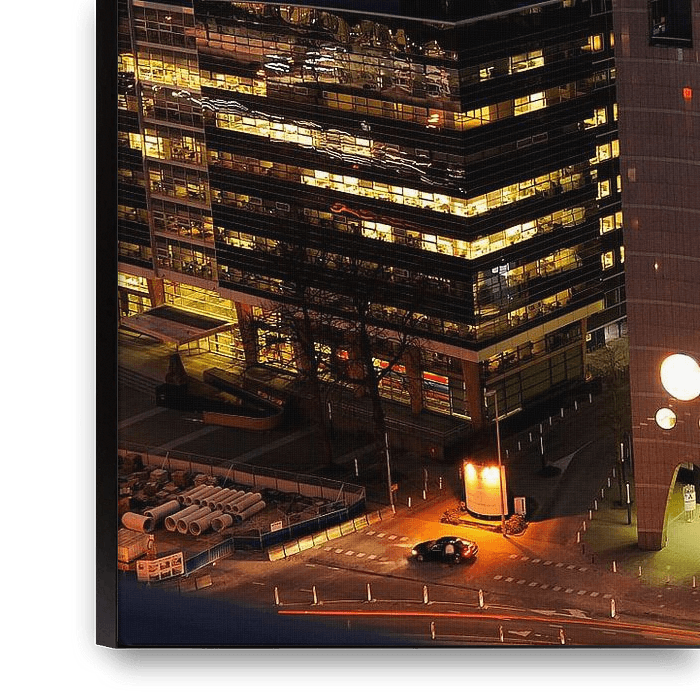 Bestelle das Foto Das SNS REAAL Büro in Utrecht an der Ecke Croeselaan / Graadt van Roggenweg von Donker Utrecht als Reproduktion auf Leinwand, Alu-Dibond, als Poster, Fototapete oder Acrylglasbild.
