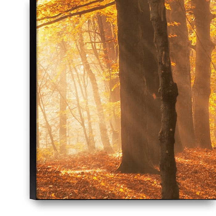 Bestelle das Foto Das goldene Licht eines Waldes im Herbst von iPics Photography als Reproduktion auf Leinwand, Alu-Dibond, als Poster, Fototapete oder Acrylglasbild.