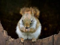 Ein süßes Bild, wie'ein Eichhörnchen knabbert. Prominente, frontale Ansicht!
