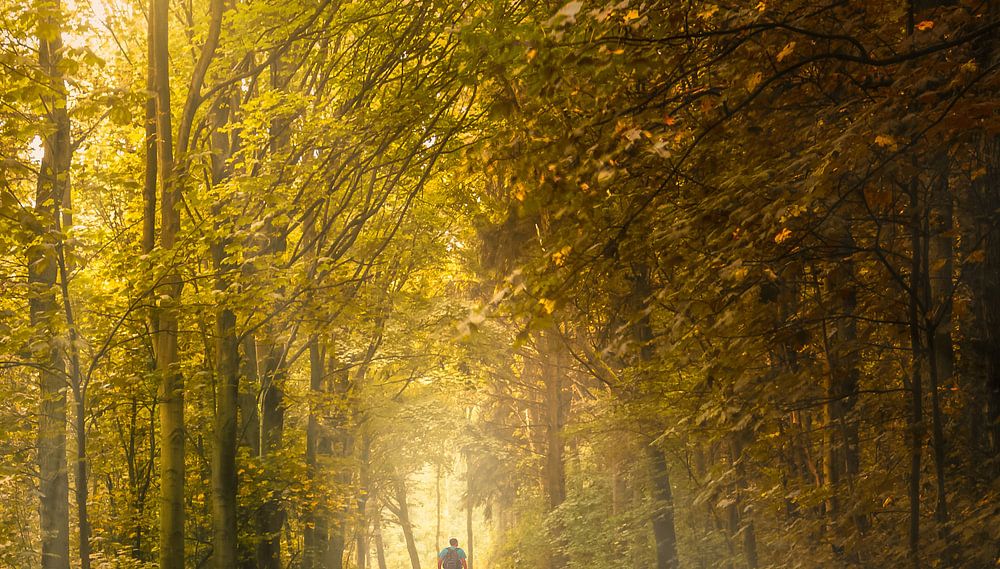 Een mooie herfst foto van een laantje in het Robbenoord bos. De zon geeft deze foto een prachtig sfeervol gevoel.