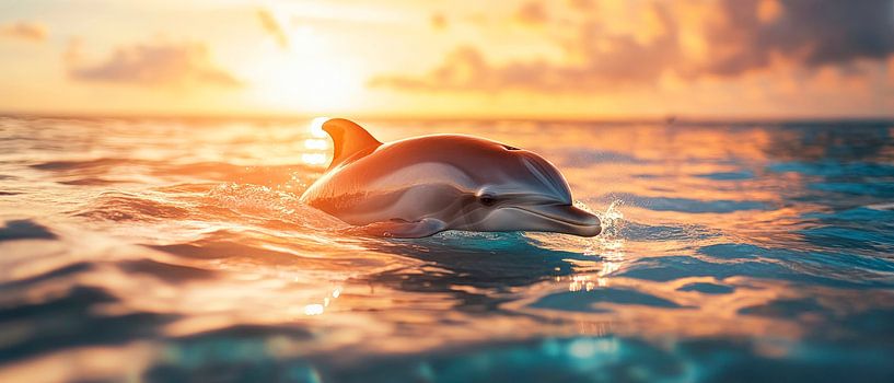 Delfin unter Sonnenuntergang im Meer von Poster Art Shop
