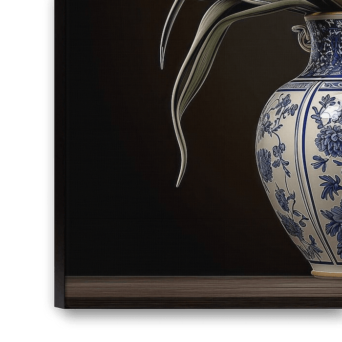 Delfter Blau Vase mit weißen Tulpen mit einem blauen Akzent im Stil der alten Meister aus dem 17. Jahrhundert, Tulpen heben sich schön auf dem dunklen Hintergrund. Passt sowohl zu modernen und klassischen Interieurs.
