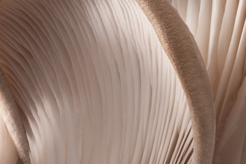 Wenn Sie, aus welchen Gründen auch immer, nicht nach draußen gehen können, um zu fotografieren, ist es schön, dass Sie mit einem Makroobjektiv auch drinnen arbeiten können. Ich habe mir vor kurzem einen Bausatz gekauft, mit dem ich meine eigenen Austernpilze züchten kann (das macht richtig Spaß). Sie sind nicht nur köstlich in einem Risotto, sondern auch ein schönes Fotomotiv. Die Pilze wachsen sozusagen in einem Klumpen/Cluster mit mehreren Pilzen. Mir gefallen besonders die Lamellen des Austernpilzes, die so zart und schön strukturiert sind. Durch das Spiel mit Licht und Komposition habe ich versucht, ein schönes und intimes Bild (fast abstrakt) des Austernpilzes einzufangen, und ich muss sagen, ich bin sehr zufrieden mit dem Ergebnis.