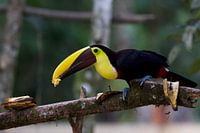 Bestelle dieses Vögel Wandbild Der Bananenfresser von Cynthia Vaders als Reproduktion auf Leinwand, Alu-Dibond, als Poster, Fototapete, ArtFrame oder Acrylglasbild, maßgefertigt in höchster Qualität.