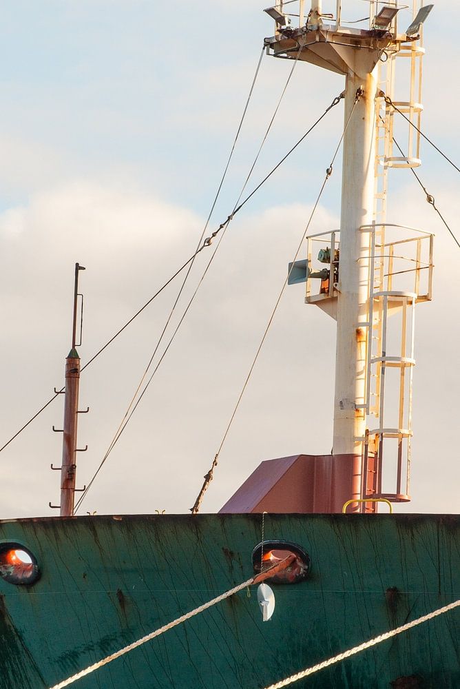 Der schwere, stählerne Bug liegt still im Wasser, Rostspuren ziehen sich wie braune Adern über das Metall. Die Wolken über ihm filtern das Sonnenlicht und werfen einen warmen Schein auf Deck und Kai. Die Festmacher sind straff gespannt, als wollten sie das Schiff zurückhalten, während es sich…