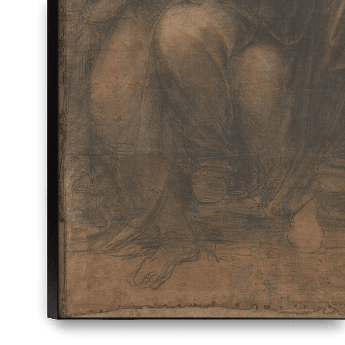 Bei diesem Werk handelt es sich um eine Karikatur, d. h. um eine umfangreiche Skizze, die als Vorarbeit für ein Gemälde angefertigt wurde. Es ist berühmt als 'The Burlington House Cartoon' und steht als die einzige verbliebene großformatige Zeichnung, die Leonardo zugeschrieben wird.