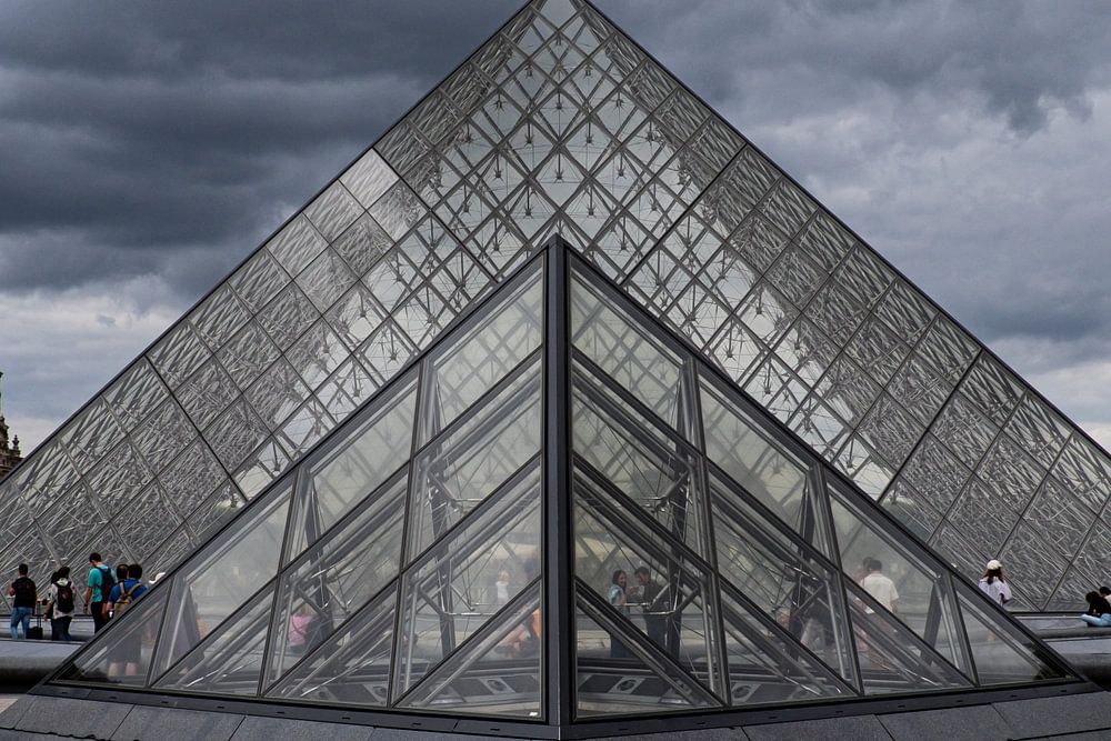 Die markanten Pyramiden eines der berühmtesten Museen der Welt. Leider war es kein sonniger Tag, aber die grauen Wolken verleihen dem Foto eine besondere Atmosphäre und lassen die Pyramiden noch mehr hervorstechen.