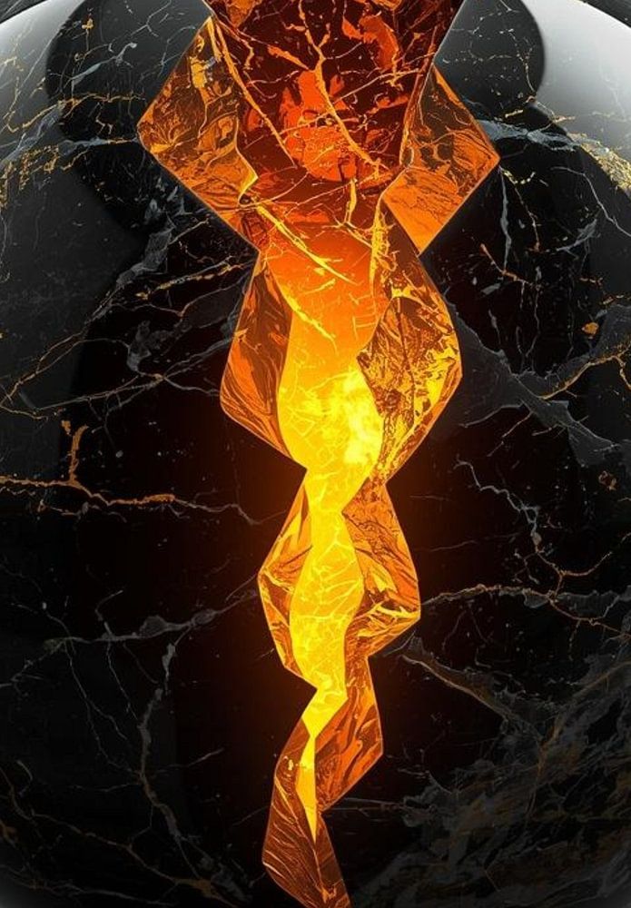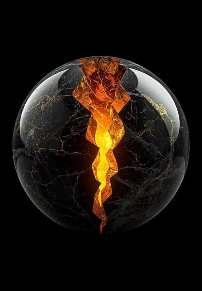 Dieses beeindruckende Kunstwerk verkörpert eine Verschmelzung von klassischer Harmonie und spiritueller Energie. Eine perfekte Kugel aus poliertem schwarzem Marmor, die sich durch elegante weiße Adern auszeichnet, ist zerbrochen und gibt den Blick auf einen strahlenden, leuchtenden Kern frei. Dieses Werk symbolisiert den Moment des…