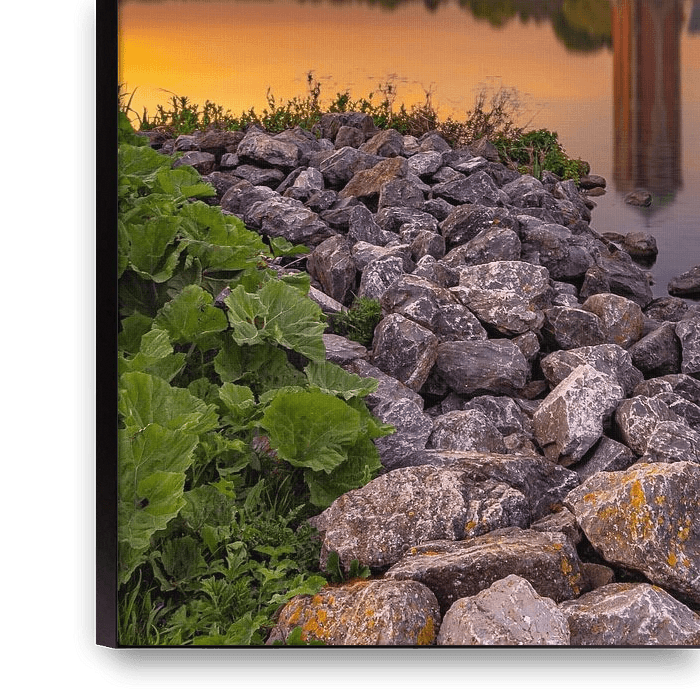 Ihre gewählte Kunst auf Leinwand, gespannt in einem Aluminiumrahmen. Schnell und einfach austauschbar für eine frische Ausstrahlung und ganz nach Ihren Wünschen.