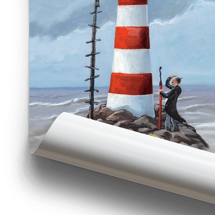 Bestelle diese Malerei Der absurde Leuchtturm von Hugeff als Reproduktion auf Leinwand, Alu-Dibond, als Poster, Fototapete oder Acrylglasbild.