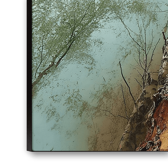 Dieses atemberaubende Naturkunstwerk, The Whispering Birch Sky, zeigt eine majestätische Birke aus der Froschperspektive: ein weißer Stamm mit rostbraunen Flecken, der sich zu einer luftigen grünen Baumkrone erhebt, die in sanften Nebel gehüllt ist. Perfekt für alle, die auf der Suche nach "Birkenbaum von unten" oder "Nebelwald-Wanddekoration" sind. Die vertikale Komposition und die subtilen Farbübergänge vermitteln Ruhe und Unendlichkeit, ideal für "moderne Naturkunst" oder "grün-weiße Innendekoration".
