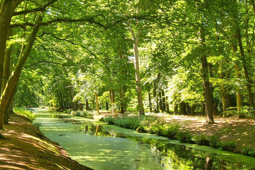 Waldgebiet mit grünem Fluss in Bergen in Nordholland