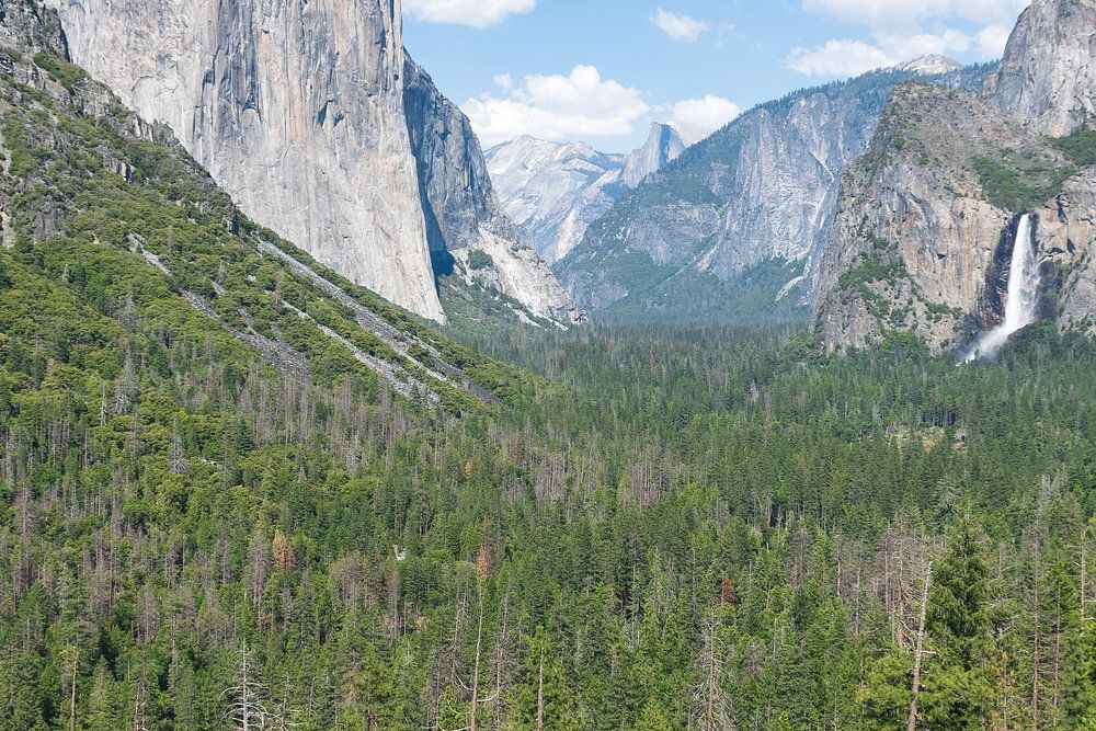 Dieses Foto zeigt die schönste Aussicht auf den Yosemite National Park in Kalifornien, Amerika. Das Foto ist in Tunnelview aufgenommen. Die Bäume und der Himmel vervollständigen dieses Bild.