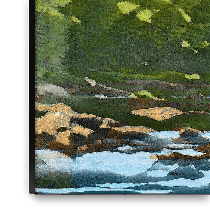 Ihre gewählte Kunst auf Leinwand, gespannt in einem Aluminiumrahmen. Schnell und einfach austauschbar für eine frische Ausstrahlung und ganz nach Ihren Wünschen.