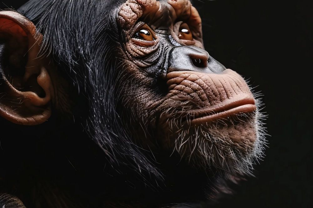 Dieses schöne Bild zeigt einen beeindruckenden Schimpansen vor einem dunklen Hintergrund. Der Realismus in diesem Porträt bringt die feinen Details des Tieres wunderbar zur Geltung. Die Intensität des Blicks des Schimpansen strahlt eine Mischung aus Weisheit und Emotion aus und macht es zu einem kraftvollen Kunstwerk für jeden modernen Raum. Die Schwarz-Weiß-Töne verstärken die Dramatik des Bildes und machen es zu einer perfekten Ergänzung für Heim und Büro. Dieses Kunstwerk lädt zum Nachdenken und zur Bewunderung ein und wird in jedem Raum, in dem es hängt, zweifellos zum zentralen Gesprächsthema werden.