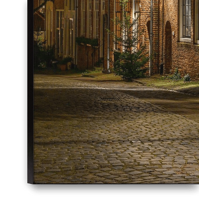 Bestelle das Foto Deventer Winterabend Straßenansicht mit Weihnachtsdekoration von Sjoerd van der Wal Fotografie als Reproduktion auf Leinwand, Alu-Dibond, als Poster, Fototapete oder Acrylglasbild.