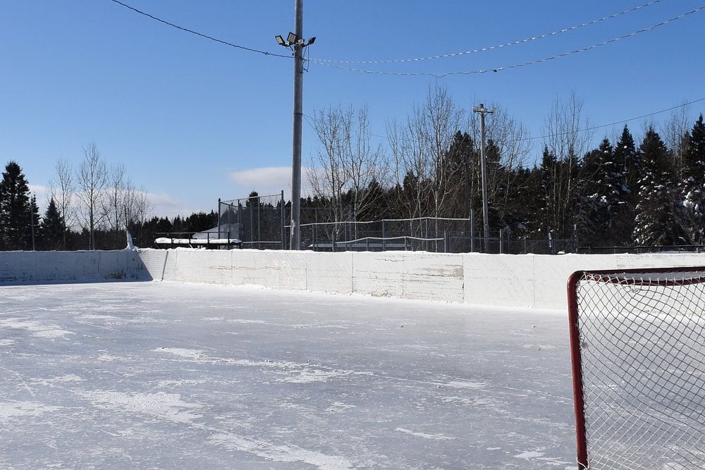 Die Eisbahn des Dorfes im Winter, Sainte-Apolline, Quebec, Kanada