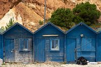 Blaue Fischerhütten an der Südküste Portugals