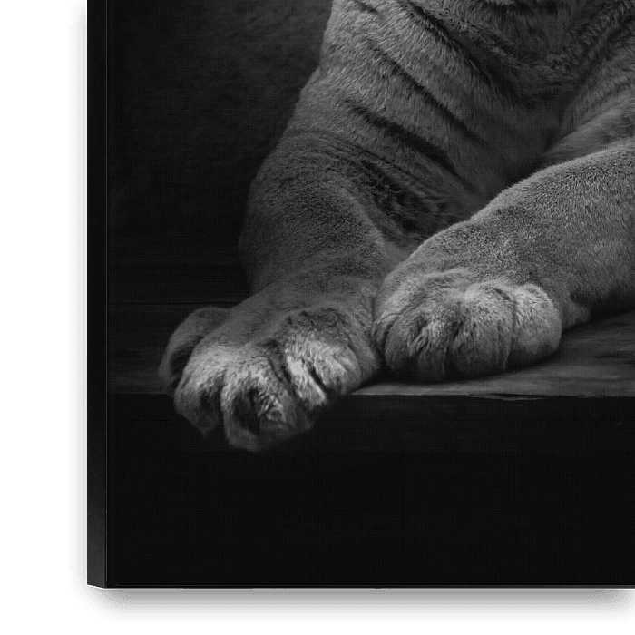 Bestelle das Foto Die Frage steht in den Augen einer trägen Puma-Frau, gefährlich und schön in der Dunkelheit, schwarz von Michael Semenov als Reproduktion auf Leinwand, Alu-Dibond, als Poster, Fototapete oder Acrylglasbild.