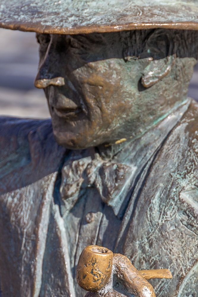 Hommage an Georges Simenon mit Maigret-Skulptur im Zentrum von Lüttich.