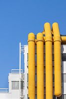 Eine Detailaufnahme der Zentralbibliothek in Rotterdam mit den bekannten gelben Rohren.