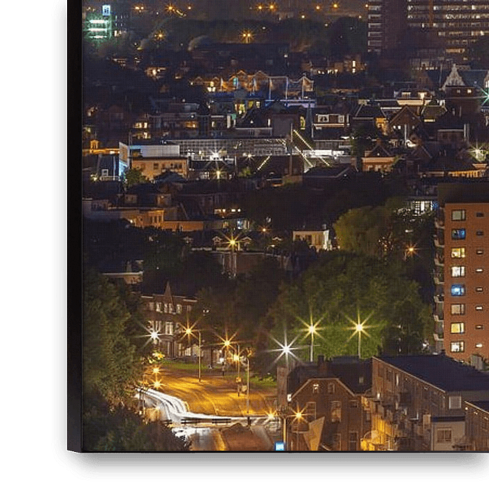 Bestelle das Foto Die Stadt Groningen während der blauen Stunde von Henk Meijer Photography als Reproduktion auf Leinwand, Alu-Dibond, als Poster, Fototapete oder Acrylglasbild.