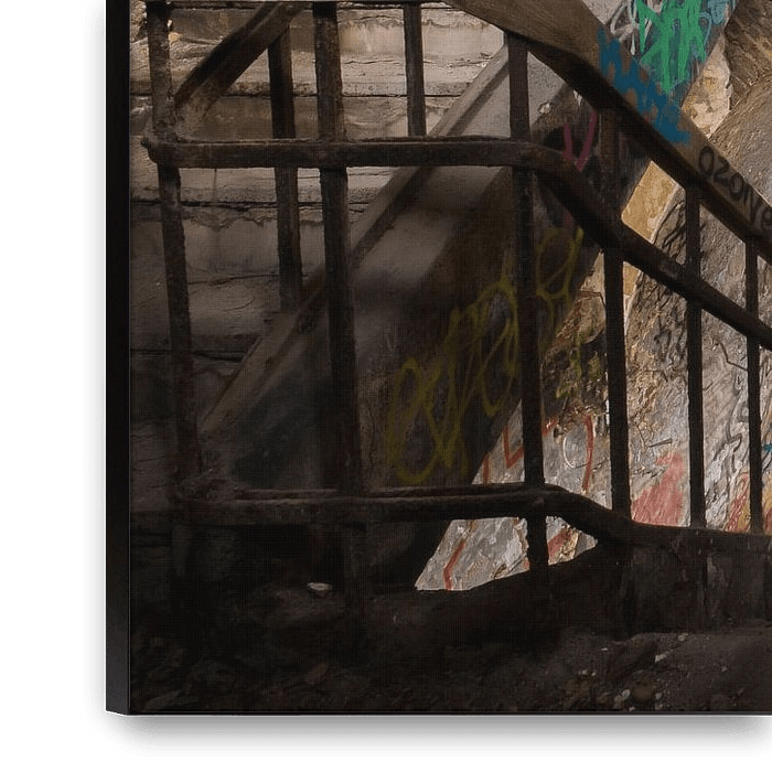Holen Sie sich mit Stairway to Decay ein echtes Urban Exploration Werk in Ihr Zuhause. Gespenstisch, baufällig, verlassen und doch farbenfroh und symmetrisch. Ein echter Blickfang für Ihr Zuhause.