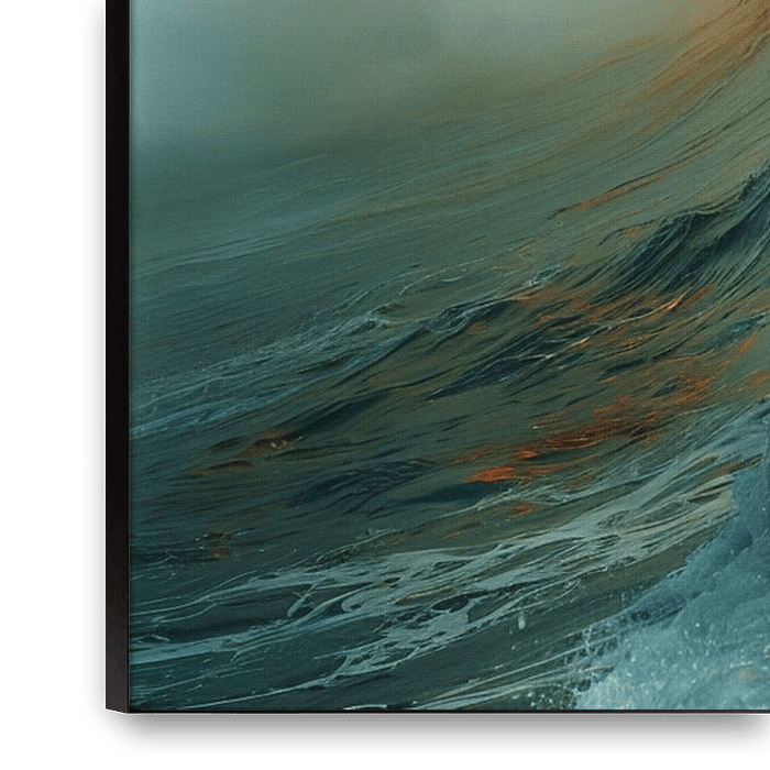 Entdecken Sie das faszinierende Werk "The Fiery Deep", das die ungezähmte Kraft und majestätische Schönheit des Ozeans einfängt. Dieses Werk ist ein visuelles Spektakel mit einer Symphonie von Farben, Texturen und Bewegungen, die sowohl wild als auch ruhig sind.