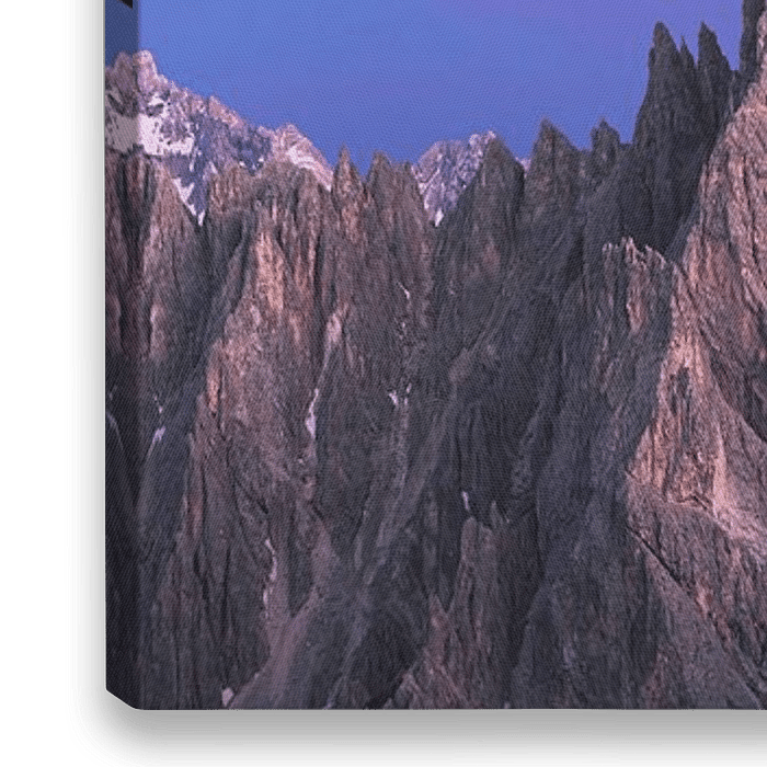 Bestelle dieses Landschafts-Wandbild Dolomiten-Panorama-Blau Stunde 3:1 von Vincent Fennis als Reproduktion auf Leinwand, Alu-Dibond, als Poster, Fototapete oder Acrylglasbild.