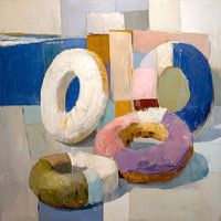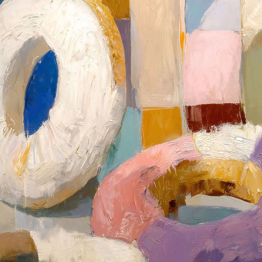 Abstraktes Gemälde mit Donuts in Retro-Farben