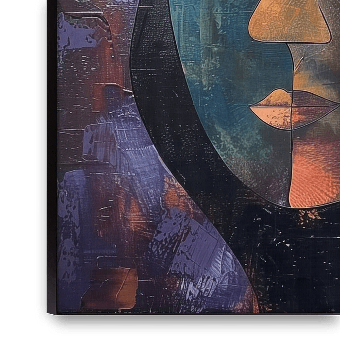 Abstraktes Gemälde mit zwei Gesichtern, das eine luxuriöse Ergänzung für jeden Raum darstellt. Mit seinem einzigartigen und stilvollen Look ist es ein echter Blickfang. Die brillanten Farben und das ungewöhnliche Design machen dieses Kunstwerk zu 100% einzigartig und originell. Es ist der perfekte Fotodruck, um Ihr Interieur zu…