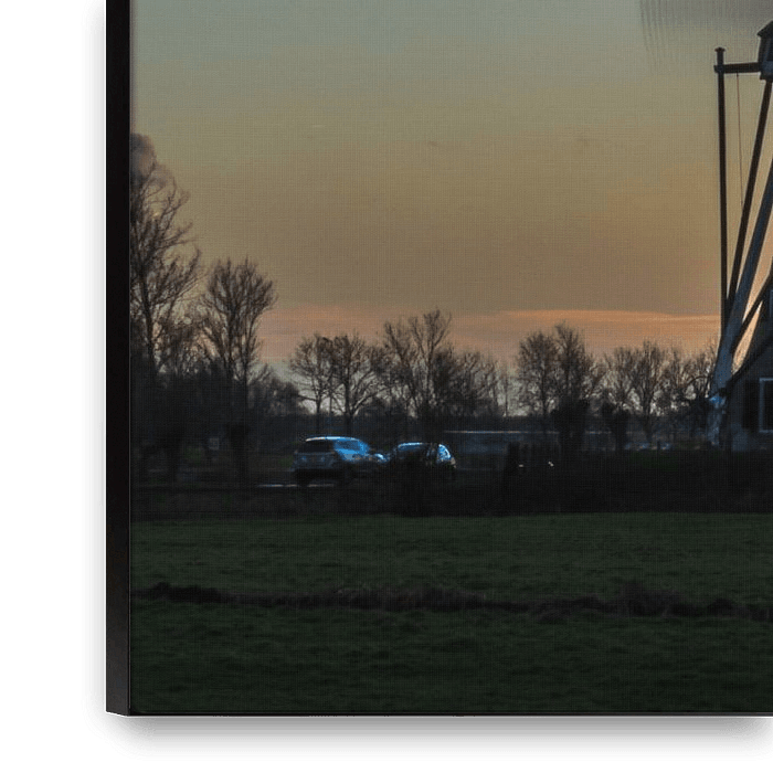 Boezemmolen no. 6, draaiend tijdens een fraaie zonsondergang over het polderlandschap van de Krimpenerwaard in Nederland