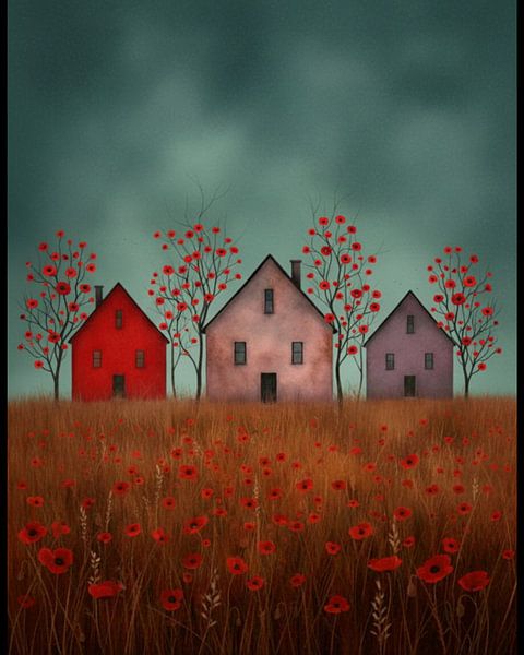 Bestelle dieses Landschafts-Wandbild Drei Häuser von vincenzomarzocchiartist als Reproduktion auf Leinwand, Alu-Dibond, als Poster, Fototapete oder Acrylglasbild.