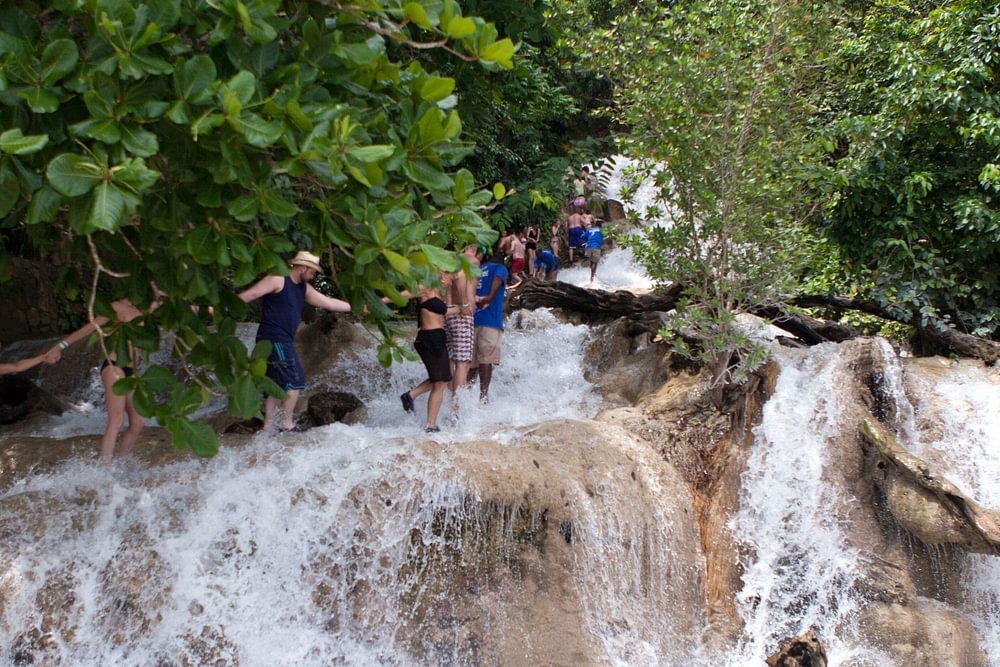 Eine Menschenkette beginnt mit der "Besteigung" der Dunn's River Falls.