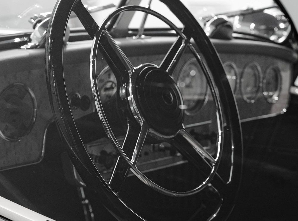 Jede Aufnahme fängt nicht nur ein Auto, sondern auch eine Ära, eine Haltung und eine Geschichte ein. Die Patina des Leders, die Rundungen der Armaturen und das stille Lenkrad erzählen von Geschwindigkeit und Freiheit – und von der Zeit, als Autofahren noch Stil hatte.