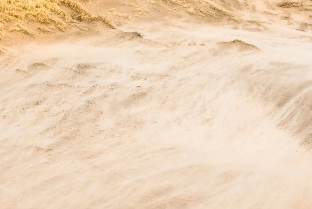 Bei einem Sturm wird kalkhaltiger Sand durch das Dünental geweht.