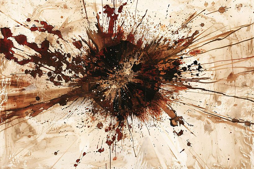 Dieses Kunstwerk ist ein dynamisches und kraftvolles Beispiel für den abstrakten Expressionismus. Die Explosion von Farbspritzern in satten Erdtönen wie Braun, Schwarz, Beige und Rot erzeugt einen dramatischen und energiegeladenen Effekt. Es ist eine perfekte Ergänzung für moderne Innenräume und verleiht jedem Raum ein Gefühl von…
