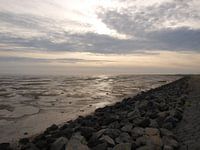 Ebbe auf dem Watt, gesehen vom Wattenmeerdeich bei Oosterend, Terschelling