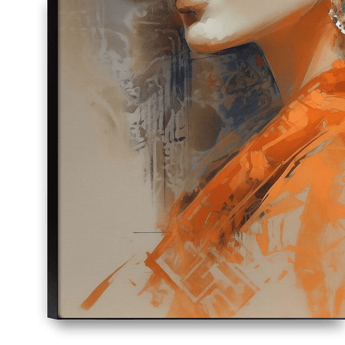 Impressionistisches Porträt einer schönen Frau in überwiegend orangefarbenen und braunen Tönen.