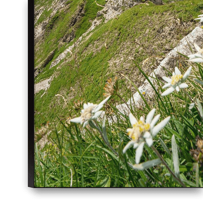 Edelweiß mit Blick über den Schrecksee auf die Allgäuer Alpen