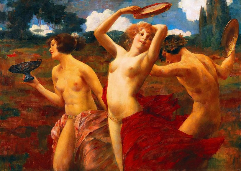 Bestelle diese Malerei Eduard Ansen-Hofmann, Bacchantinnen von Atelier Liesjes als Reproduktion auf Leinwand, Alu-Dibond, als Poster, Fototapete oder Acrylglasbild.
