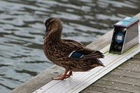 Een eend bij het water in de haven van Kampen.