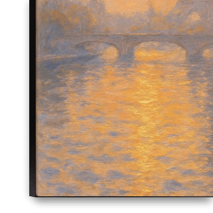 Das erste Licht der Morgendämmerung breitet sich über Paris aus und verwandelt die Seine in ein Band aus flüssigem Gold. Sanfte Pfirsich-, Rosa- und Violetttöne fließen ineinander, während sanfter Nebel über dem ruhigen Wasser schwebt. Der Eiffelturm erscheint als Silhouette, sein Spiegelbild schimmert durch impressionistische…