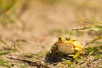 Een eigenwijze kikker die rustig bleef zitten in Nationaal Park de Biesbosch.