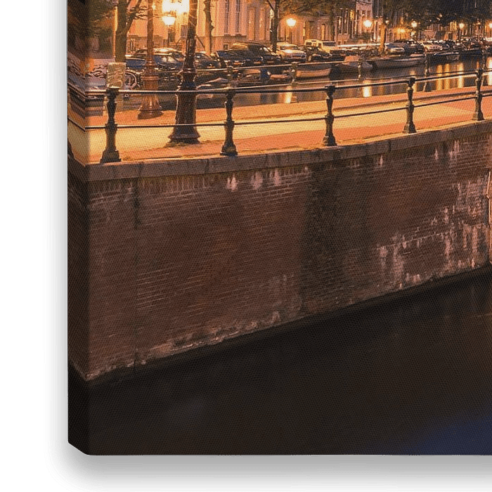 Ein Abend in Amsterdam an den Brücken und Kanälen in der Nähe der Keizersgracht und Leidsegracht im alten Zentrum von Amsterdam, Niederlande.